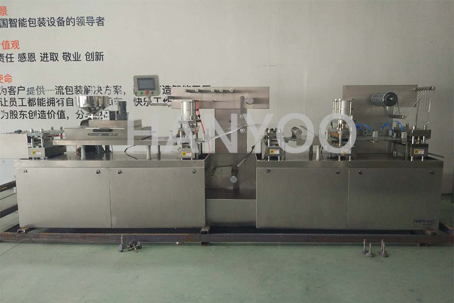 平板式铝塑铝自动泡罩包装机是根据市场需求和国际药品包装发展新潮流,为延长药品(尤其是贵重药品)的保质期在原铝塑包装机的基础上与企业共同联合开发的具有 21世纪特色的新产品。它功能齐全、机电气一体化、自动化程度高,能自动连续完成 PVC粒孔成排、铝箔袋成形、加药(或物品)、热封装、冲裁成板、计数、废料回收等多种复杂工艺过程, 生产出外形美观的铝塑铝药片板。该板不但能有效地提高包装盒内药品的避光、密封之效果, 从而成功地达到延长药品存放时间之目的,而且能起到美化、提升商品形象、提高产品档次和售价,给企业带来巨大的经济效益、使用户受益而深受广大用户的欢迎。