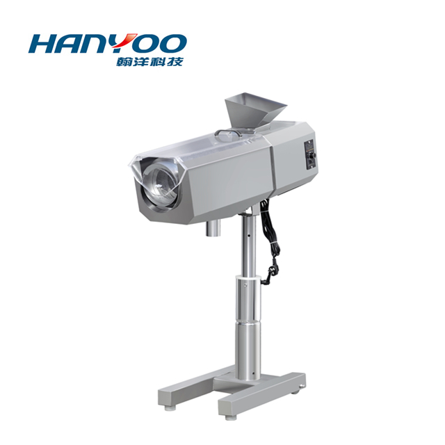 本机采用交流无刷电机实现无级调速,能满足不同产量、不同药品的除粉要求。进料口和出料口高度、角度可在一定范围内任意调节,以适应不同的工作要求;机座底部装有脚轮,可将机器方便地移放到工作地点。本机由进料斗、动力箱、筛片箱、筛鼓、吹扫装置、出料口、机架、调速装置、传动机构等部分组成,片子从进料斗加入到筛鼓,筛鼓由交流调速电机及减速机构组成的动力箱驱动而旋转,片子沿着筛鼓内的螺旋板在圆周下方向出料口传送,筛鼓上的网孔对片子进行温和磨边,压缩空气吹扫装置对片子表面近距离连续吹扫,粉尘在喷射气流、离心力和重力的作用下由筛鼓进行“片”和“粉”分离,同时粉尘随吸尘气流吸入粉尘收集装置内,最终清除片子表面吸附的粉尘和毛边部分。机器可借助升降支杆及锁紧手柄调整进料口和出料口的工作高度和角度。