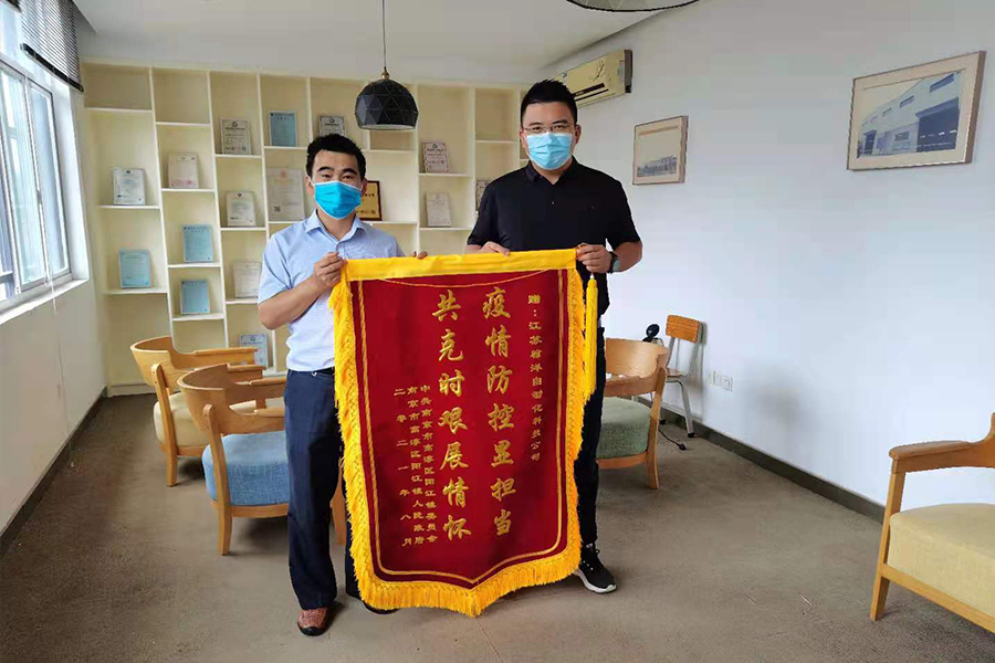 收到锦旗后,公司总经理表示,带头抗击疫情是江苏翰洋制药设备有限公司应有的社会担当,这面锦旗是政府和委员会对我公司防控疫情工作的肯定,同时也是一种激励。随着疫情防控工作进入常态化,江苏翰洋科技公司全体职工将更加尽心尽力,坚决打赢疫情防控阻击战。